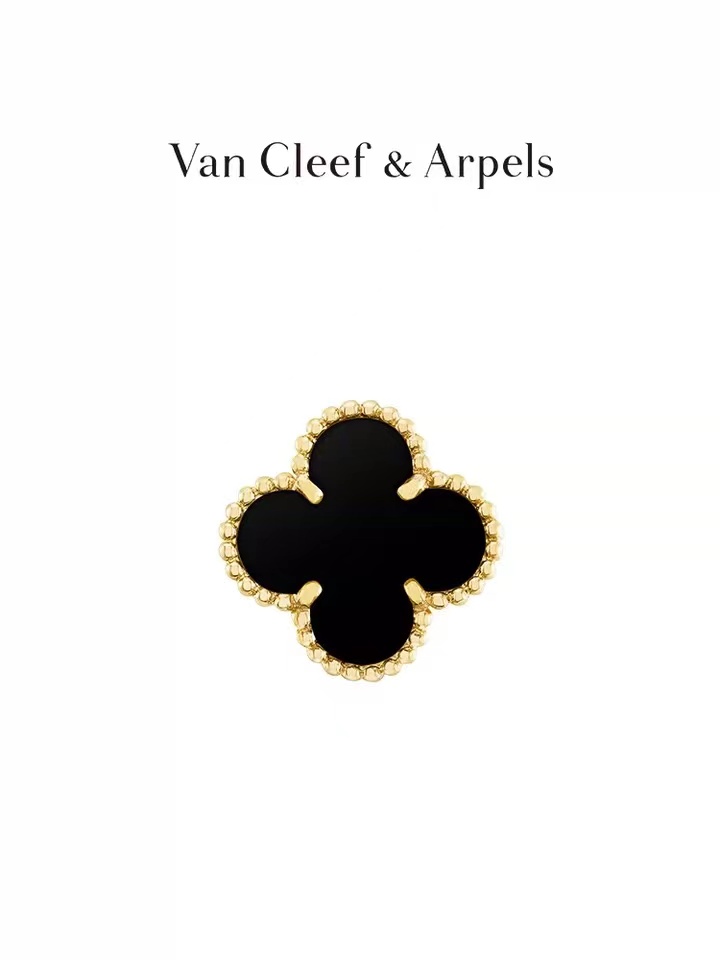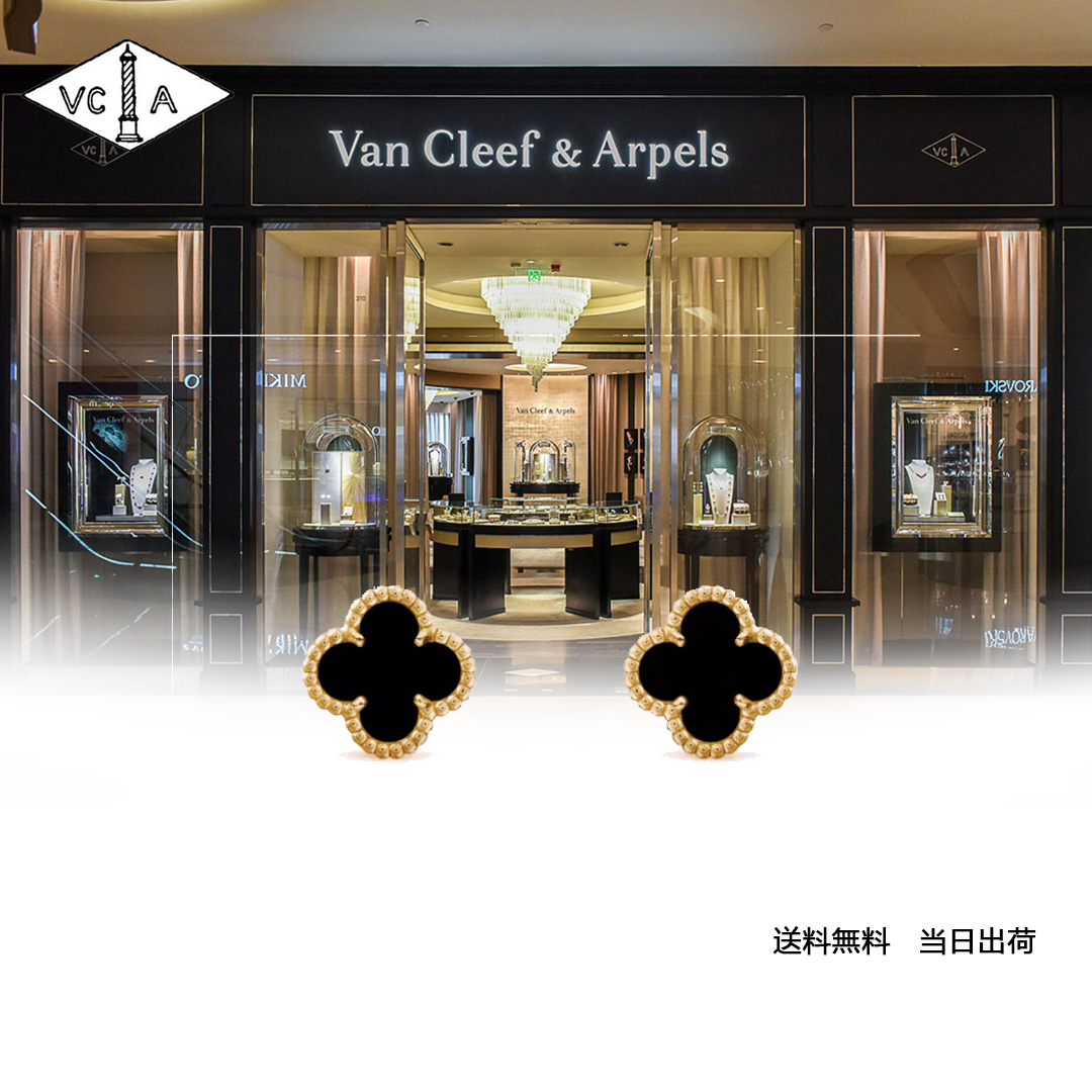 スウィート アルハンブラ ピアス、イエローゴールド、オニキス