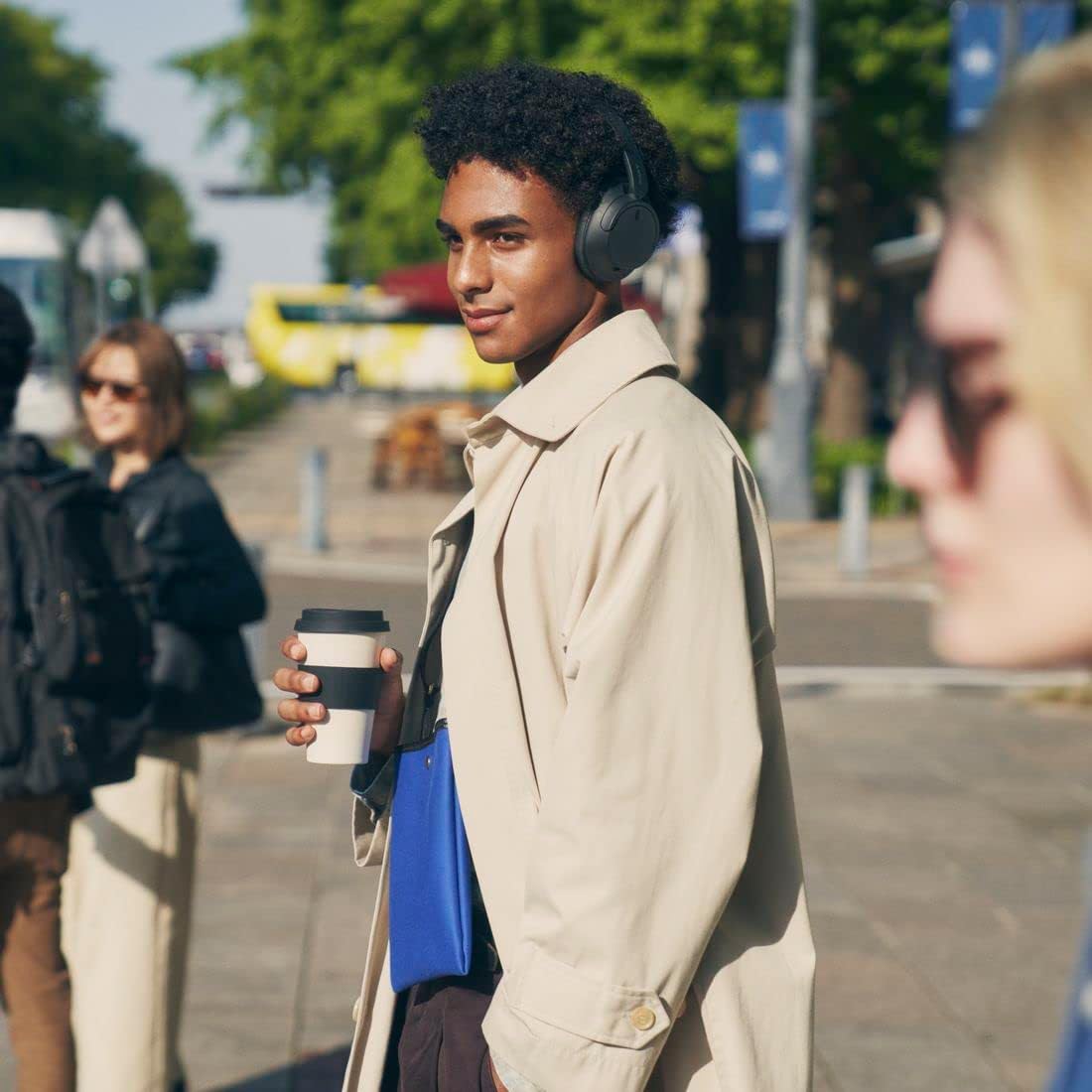 音楽を聴きながら、周囲の音も聴ける「アンビエントサウンド(外音取り込み)モード」を搭載。信号処理における外音取り込み量を増やすことで、より自然な外音取り込みを実現します。さらに「ボイスフォーカス」をONにすることで、ノイズを抑えつつ人の声を取り込むことも可能です(*)。