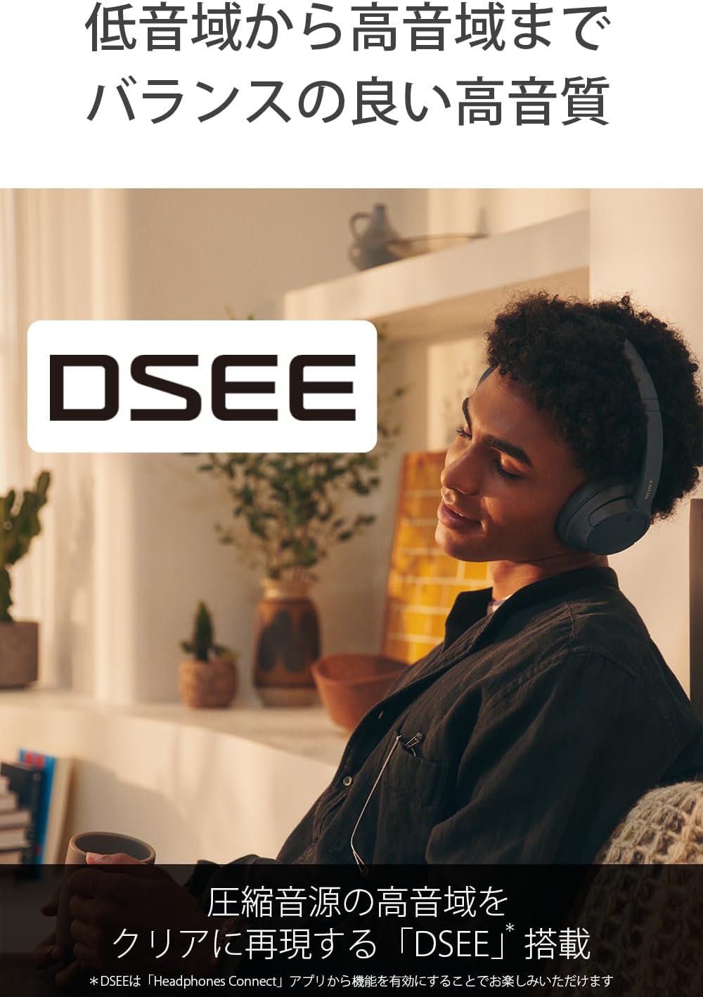 * DSEEは「Headphones Connect」アプリから機能を有効にすることでお楽しみいただけます