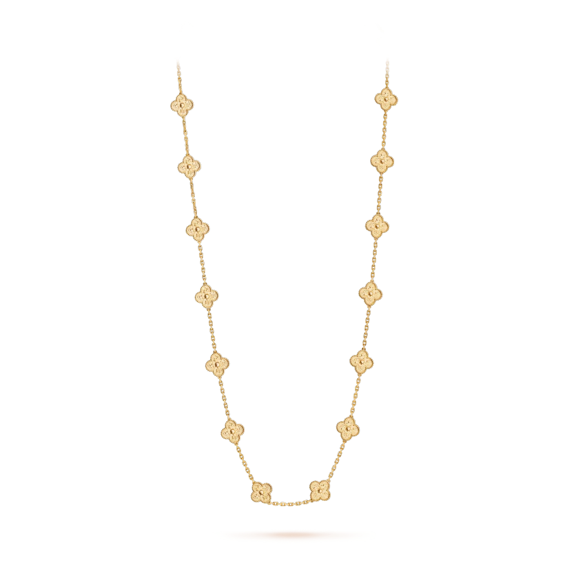 ヴィンテージ アルハンブラ ロングネックレス、20モチーフ、イエローゴールド