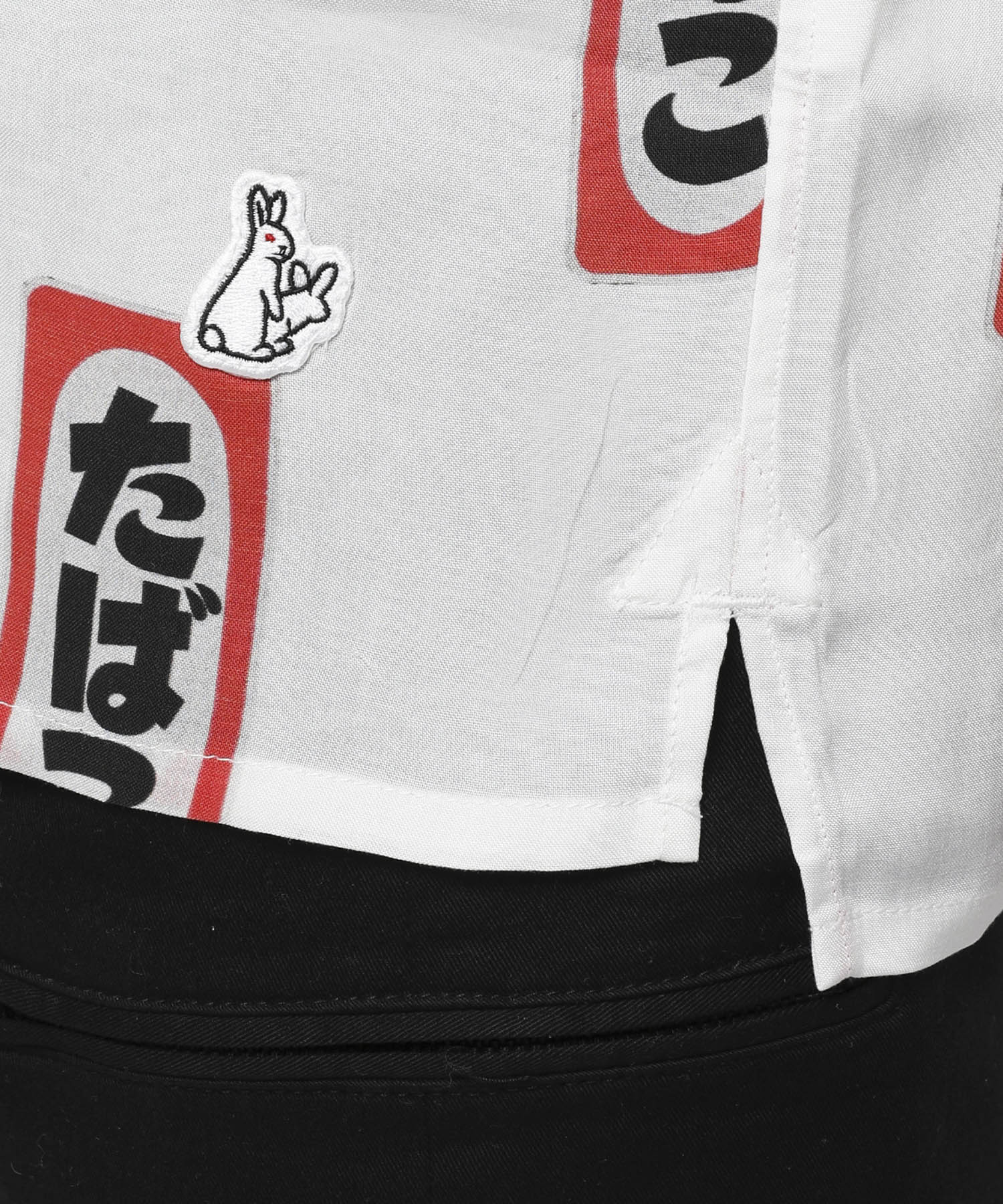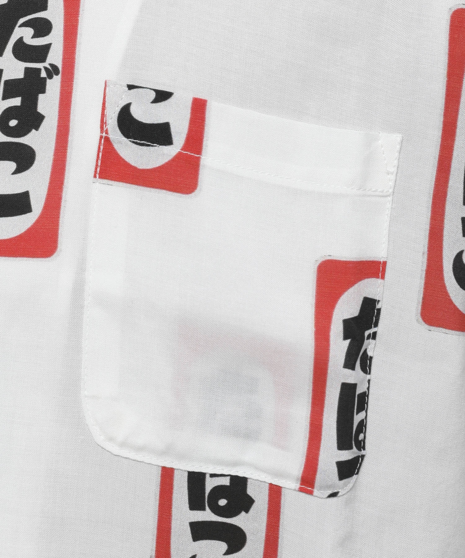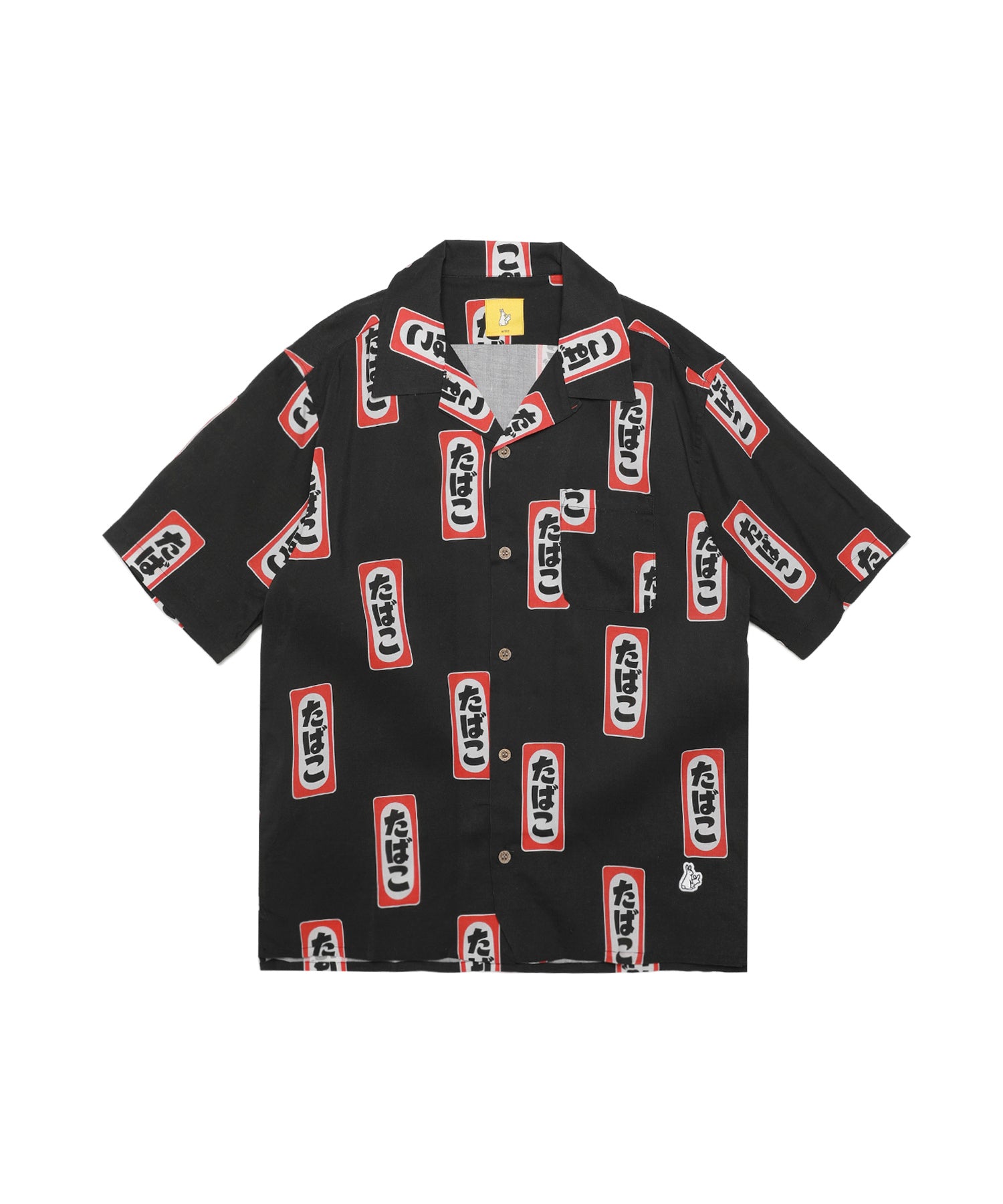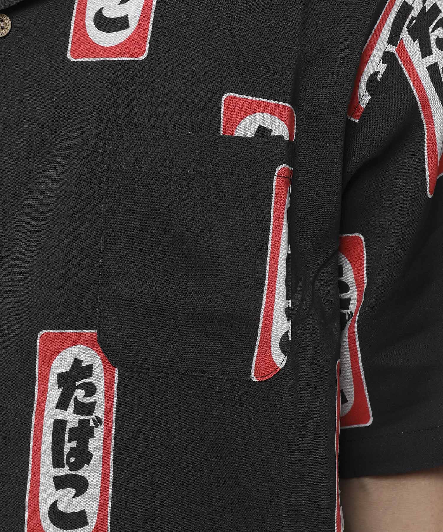 御守りのデザインでも取り入れられている「たばこ」のデザインをそのまま総柄で落とし込んだアロハシャツ。レーヨン素材特有の上品な光沢感と柔らかくラフな雰囲気が調和した一枚に仕上がっています。しっかりとした存在感があり、ボタンを閉めて開襟シャツのような着こなしから、オープンフロントでさらっと羽織っても楽しめるアイテムになっています。こちらは、同デザインのとセットアップでも楽しめます。