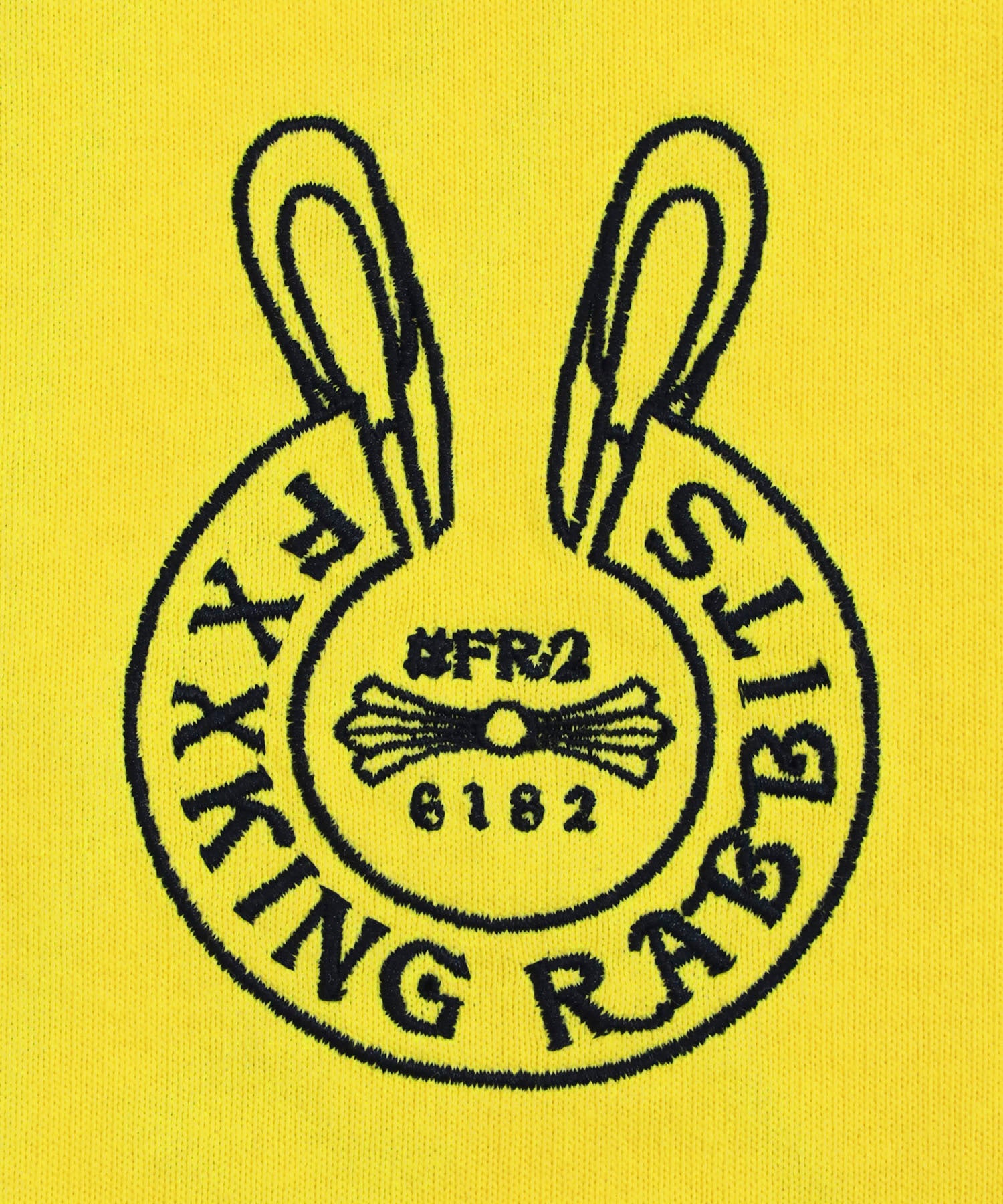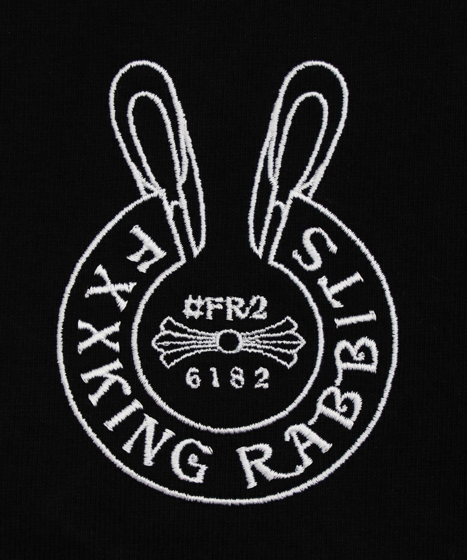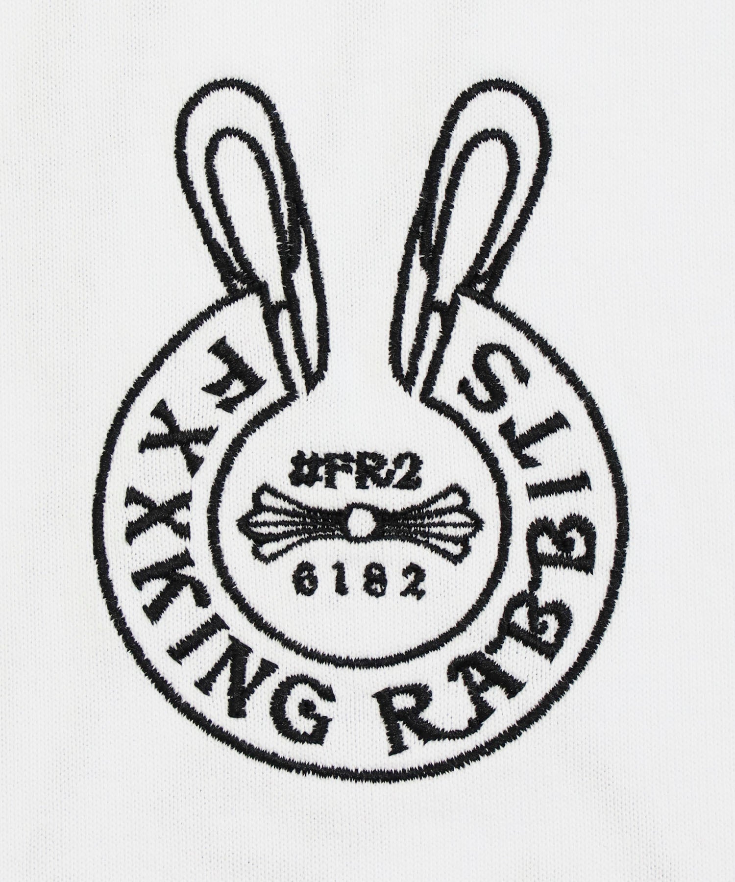 ウサギの顔の輪郭の中にロゴを組み合わせたデザインを全刺繍でフロントとバック双方に落とし込んだ一枚。型番:FRC3564