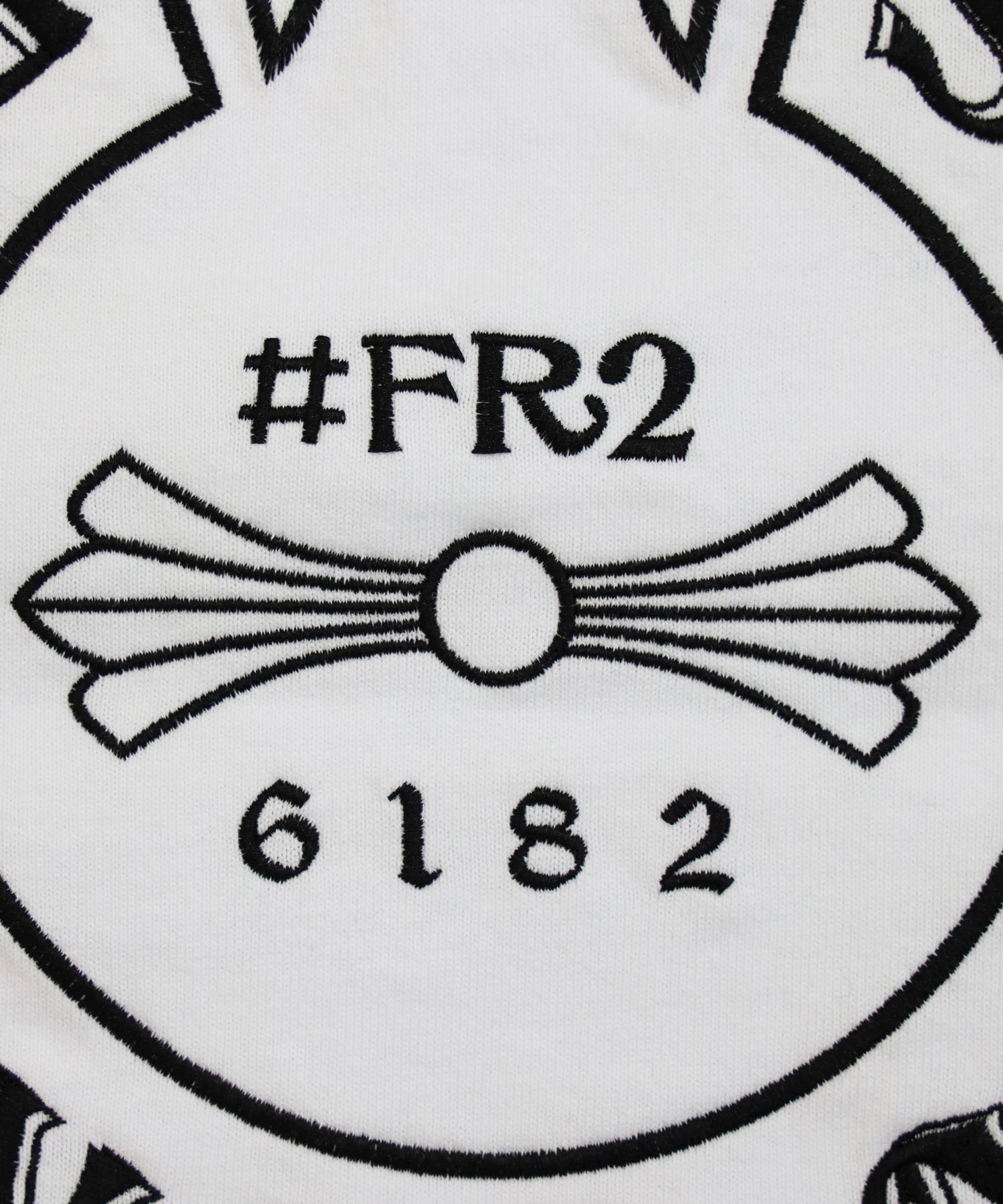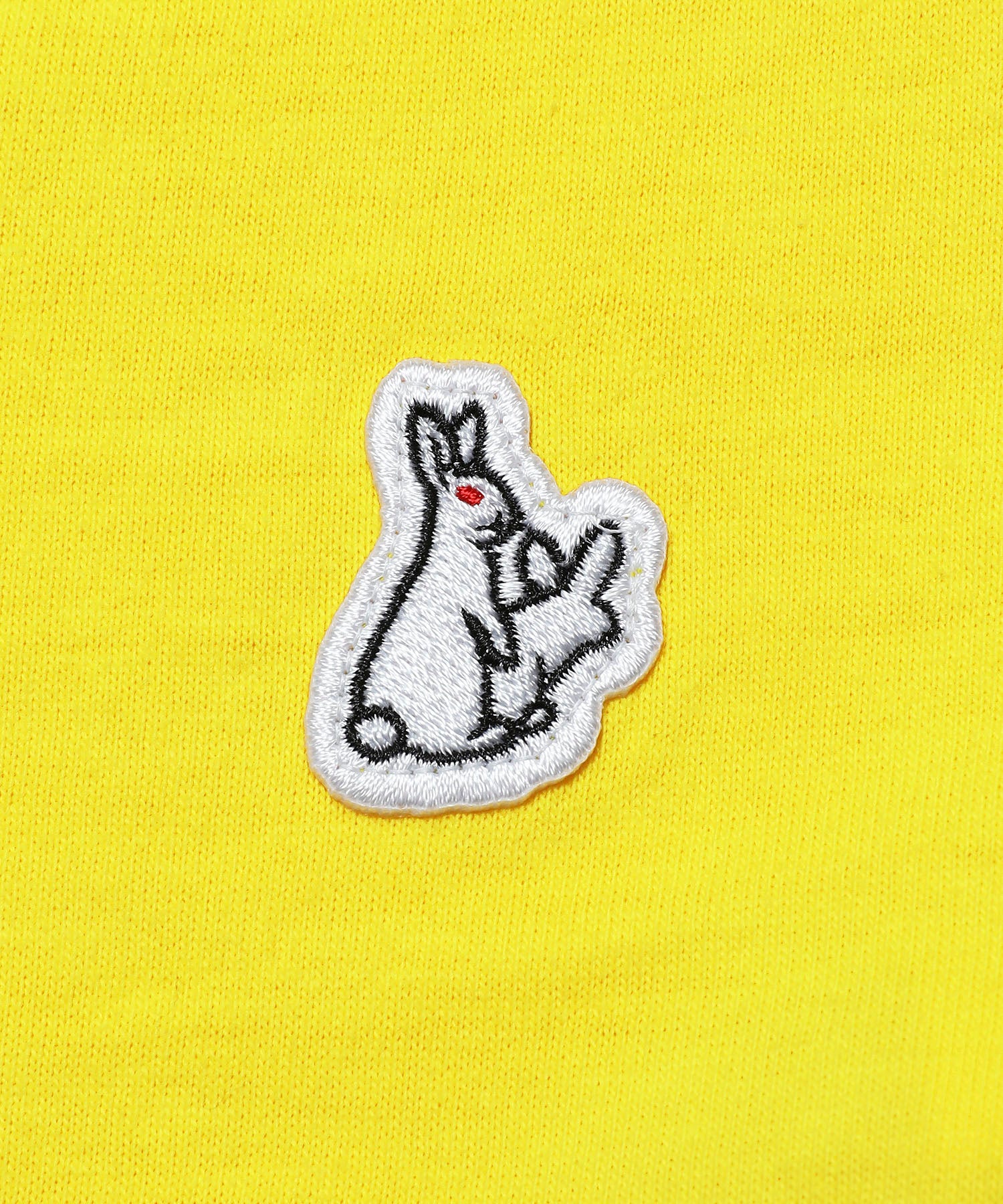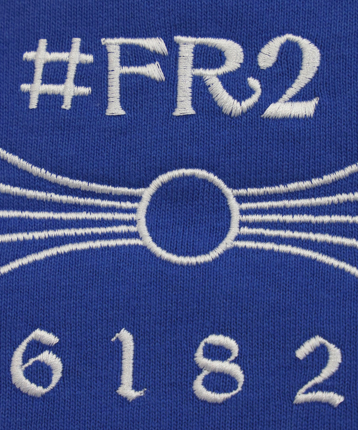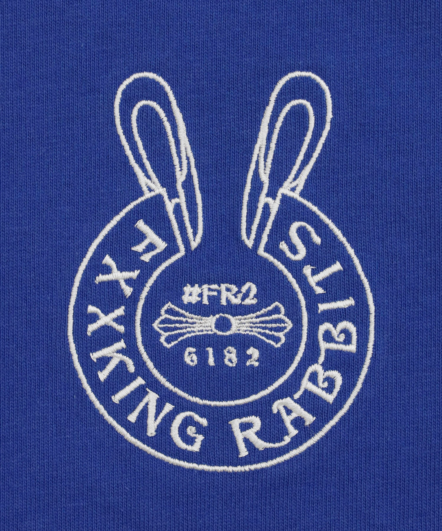 ウサギの顔の輪郭の中にロゴを組み合わせたデザインを全刺繍でフロントとバック双方に落とし込んだ一枚。型番:FRC3564