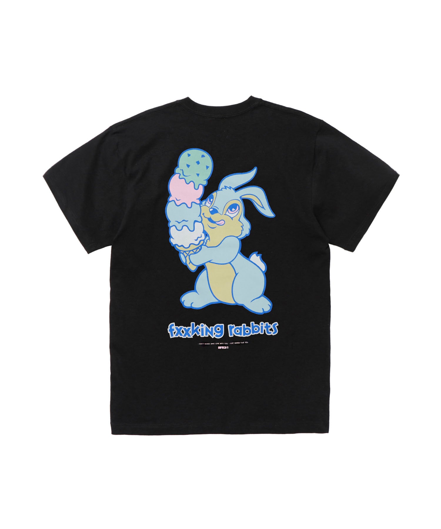 ポップなイラストデザイン、それに合わせてフロントのロゴも同様な雰囲気のフォントと色を使用し刺繍で落とし込んだ一枚後ろから見た際に元気になれそうなTシャツ。型番:FRC3723