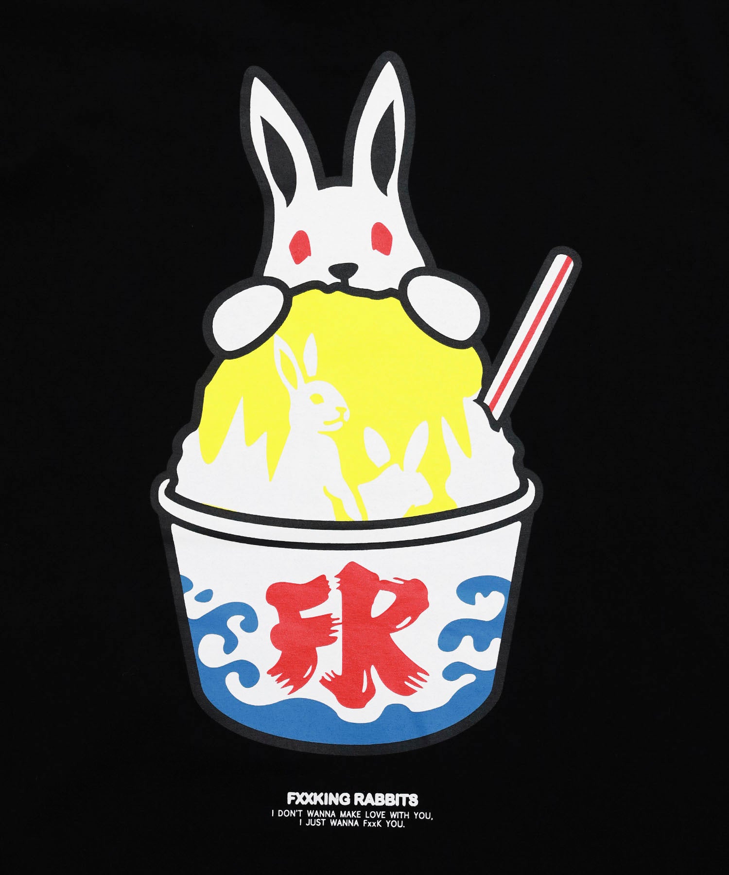 風情のあるデザインとポップな雰囲気のウサギを組み合わせたグラフィックをバックに大きめに落とし込んだTシャツ。フロントは氷がかかったかのようなロゴを刺繍で表現。季節感もある一枚です。型番:FRC3750