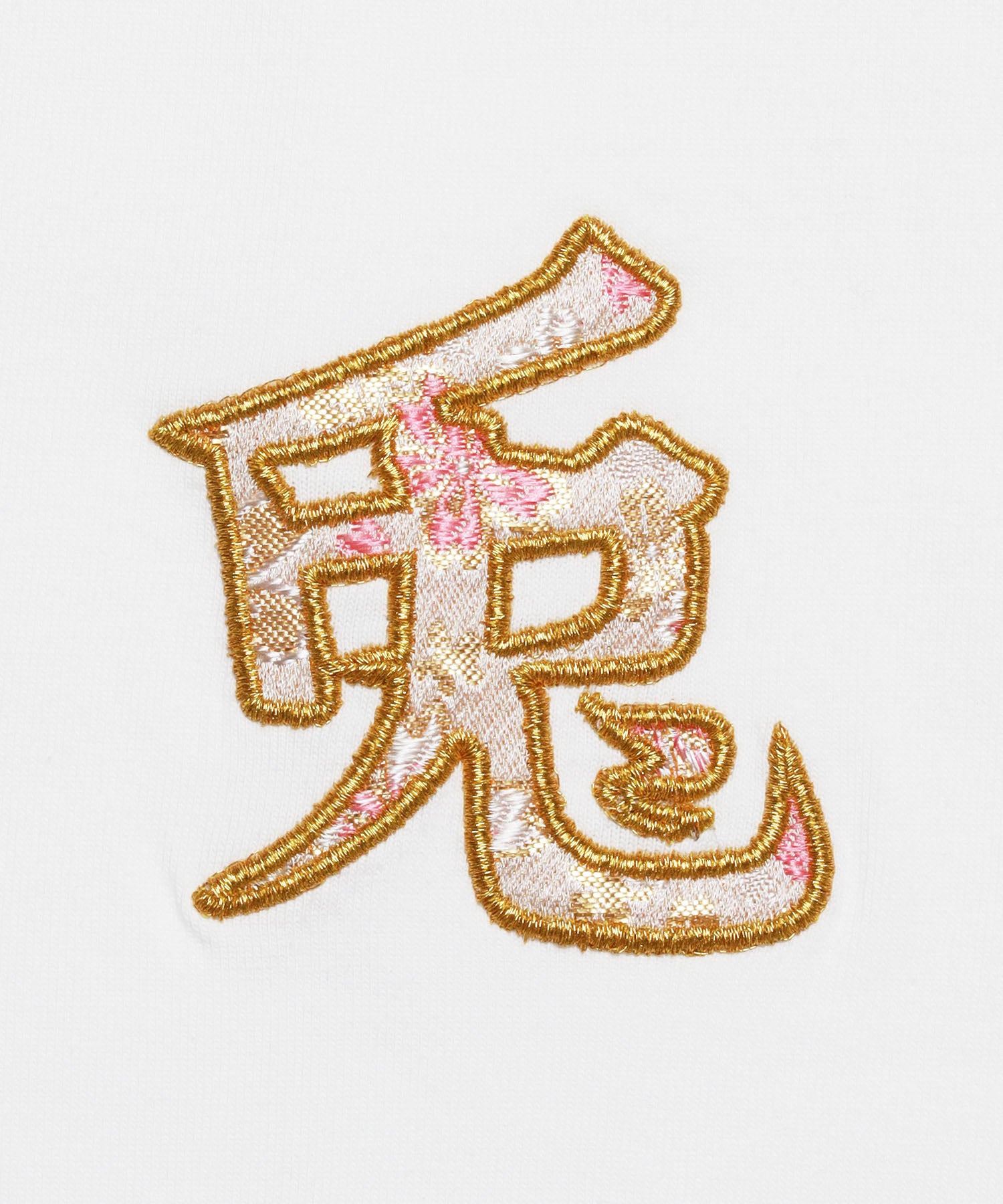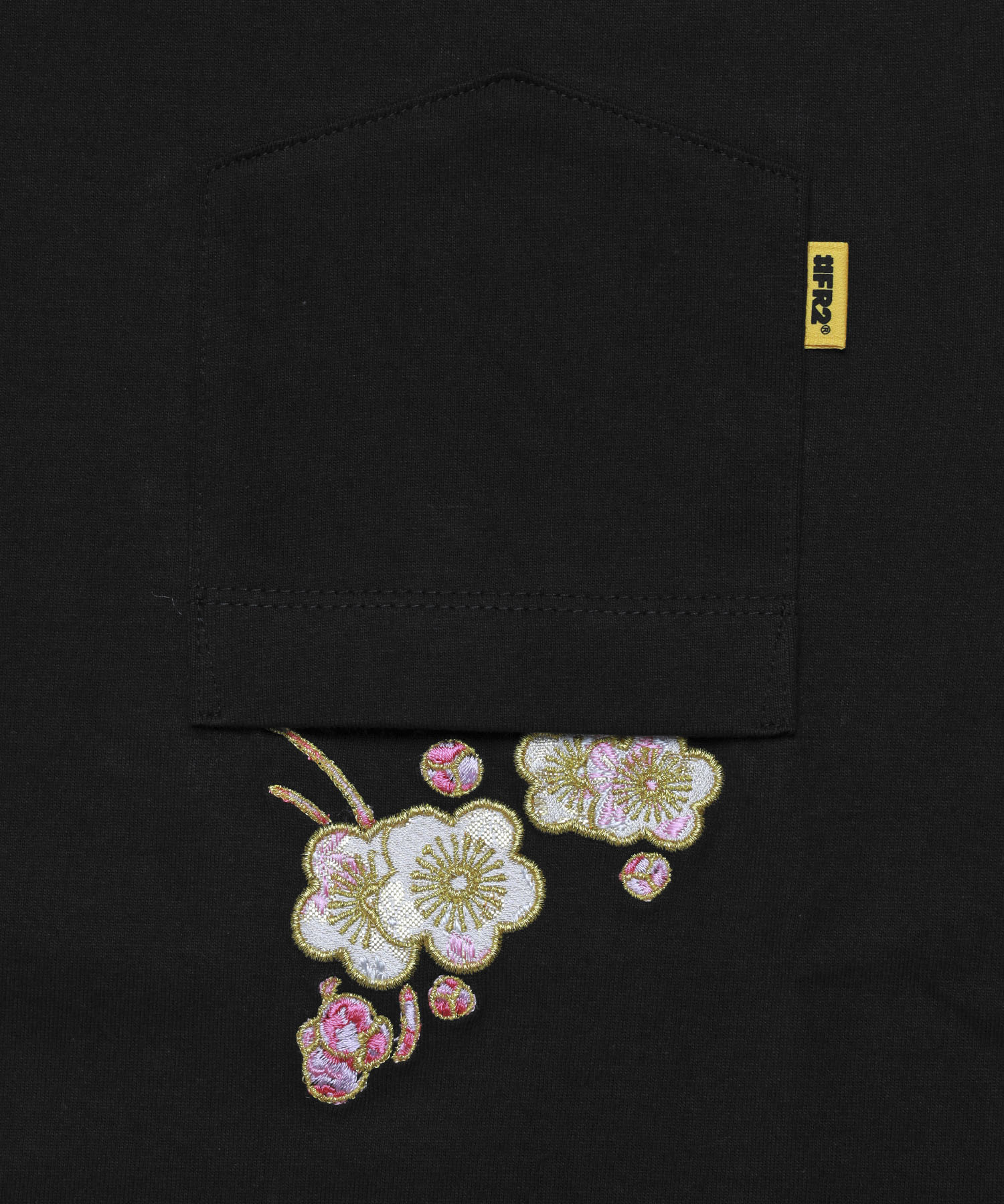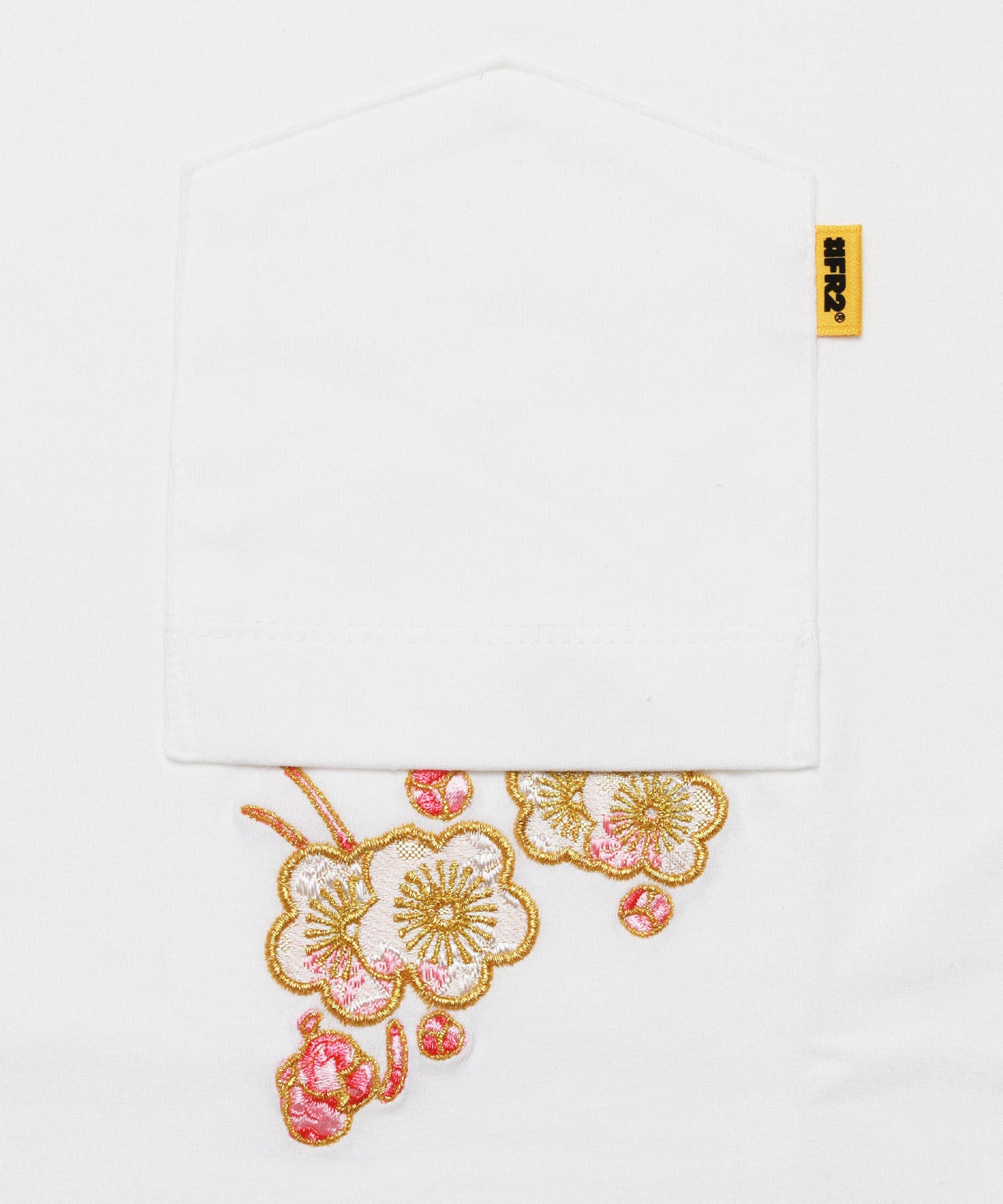 あえて逆さまに取り付けられたポケットから桜の花が落ちていくかのような遊び心も感じられる仕上がり。右胸には兎の文字を刺繍でオン。文字の中には桜が落とし込まれているのもポイント。型番:FRC3770