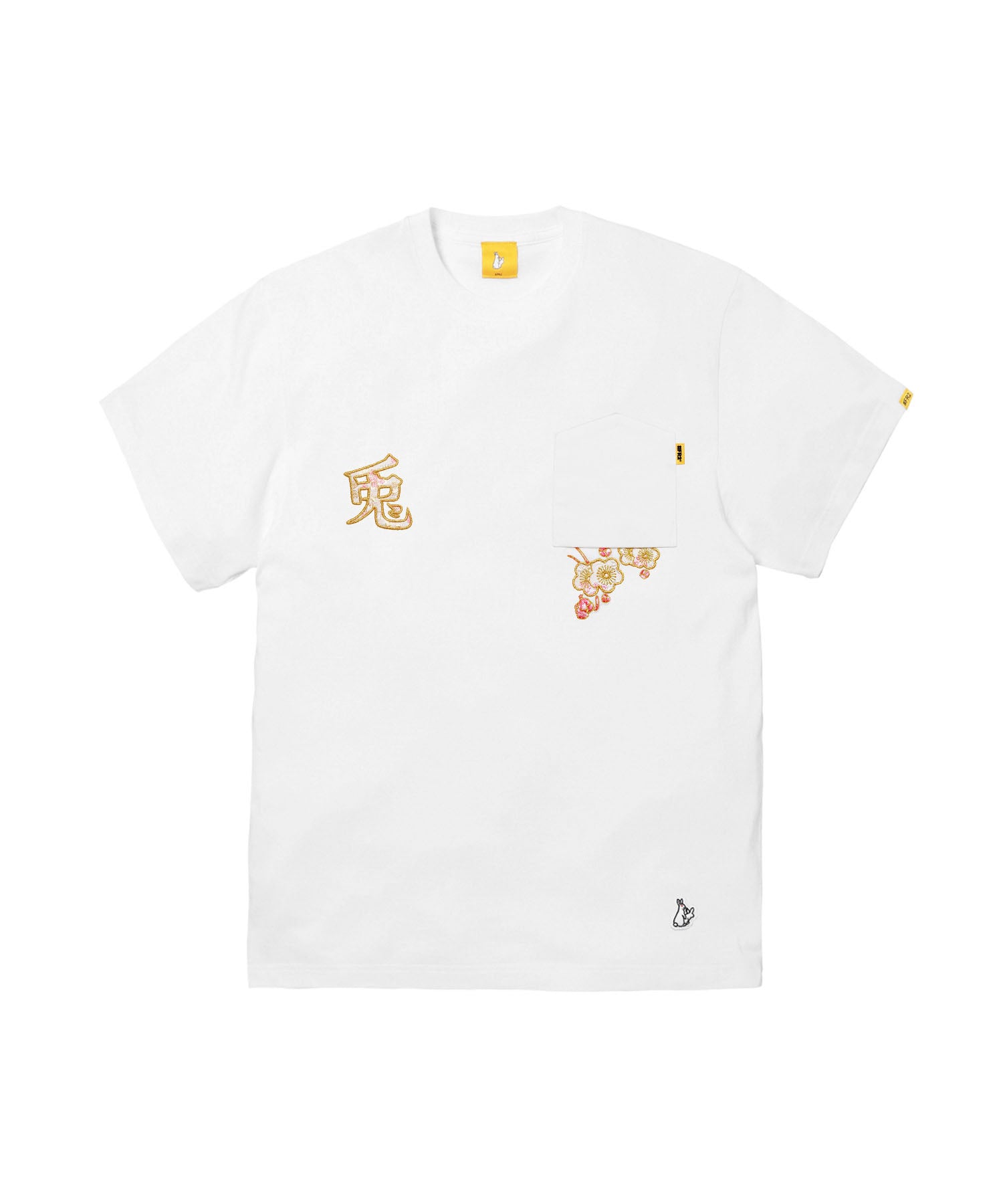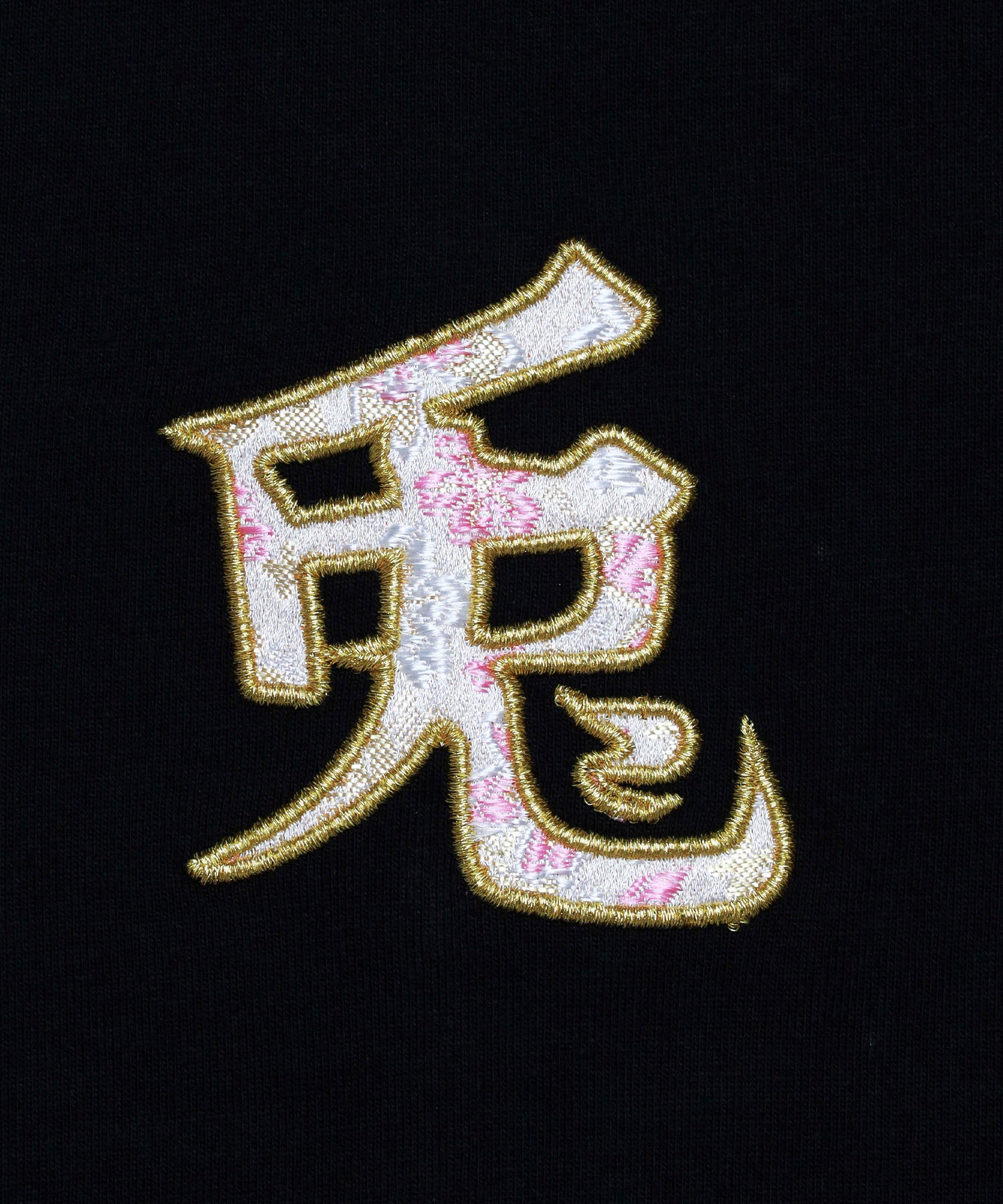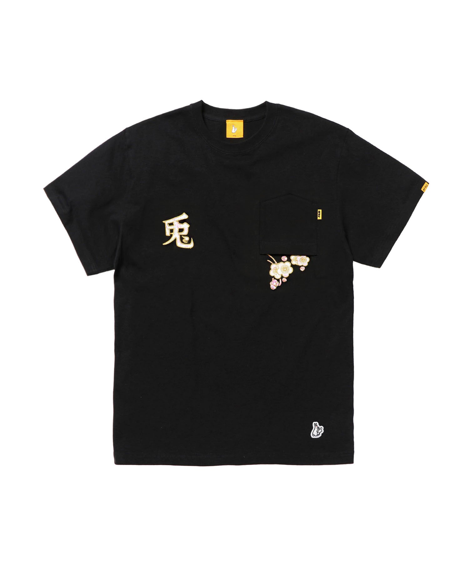 あえて逆さまに取り付けられたポケットから桜の花が落ちていくかのような遊び心も感じられる仕上がり。右胸には兎の文字を刺繍でオン。文字の中には桜が落とし込まれているのもポイント。型番:FRC3770