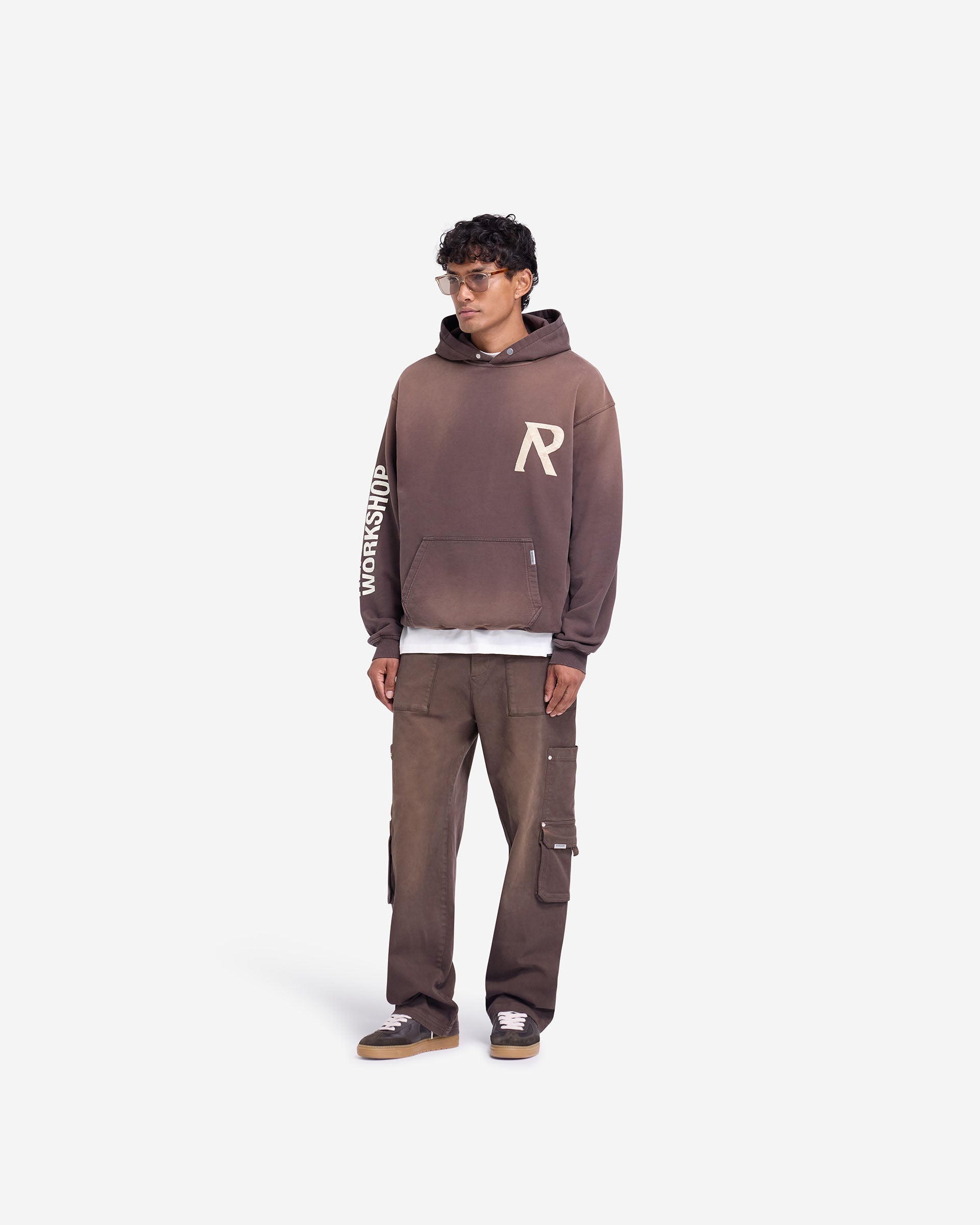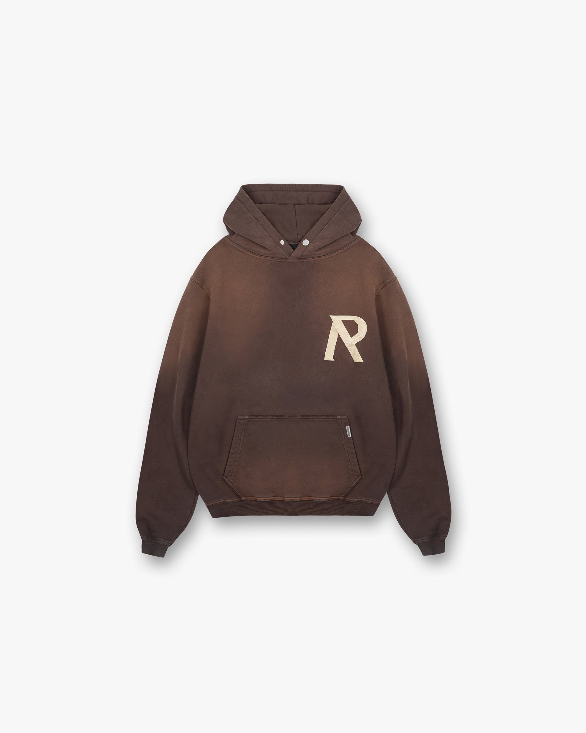 Introducing the Masking Tape Initial Hoodie in Cedar, a luxury slightly oversized hoodie, crafted from heavy weight jersey cotton. The hoodie showcases a 3D masking tape effect Initial to the front and back, with a cracked print to the sleeve. It has a corrosion vintage spray applied to the fabric, creating a vintage hue to the hoodie. It is finished with a Cobrax metal popper to the hood, and a Represent metal bar to the pocket.