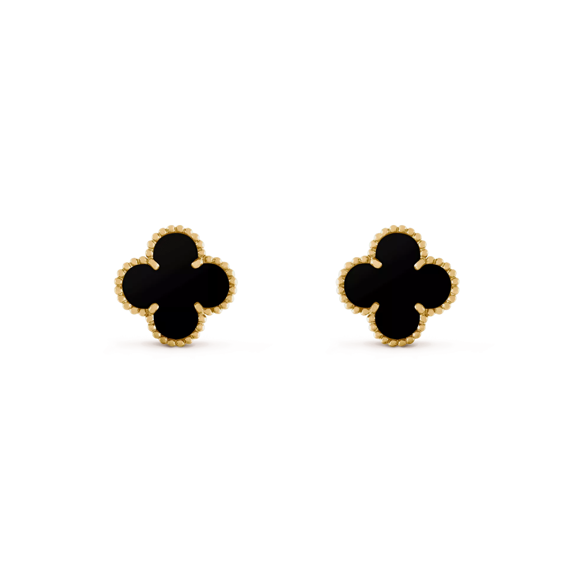 ヴィンテージアルハンブラピアス、イエローゴールド、瑪瑙。