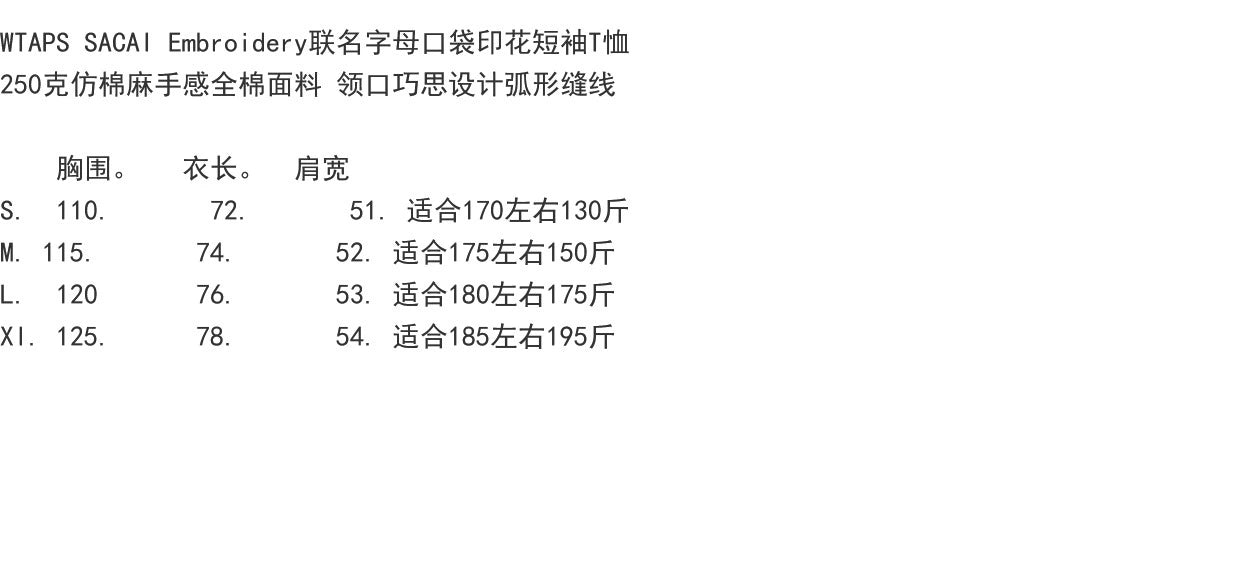 Size chart (cm)Size: S Length: 72 Bust: 110 Shoulder: 51Size: M Length: 74 Bust: 115 Shoulder: 52Size: L Length: 76 Bust: 120 Shoulder: 53Size: XL Length: 78 Bust: 125 Shoulder: 54Manual measurement, there may be 1-2cm error, please understand