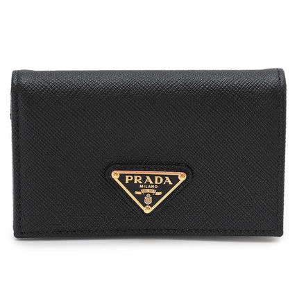 プラダ カードケース 名刺入れ サフィアーノトライアングル 三角ロゴプレート レザー ブラック 黒