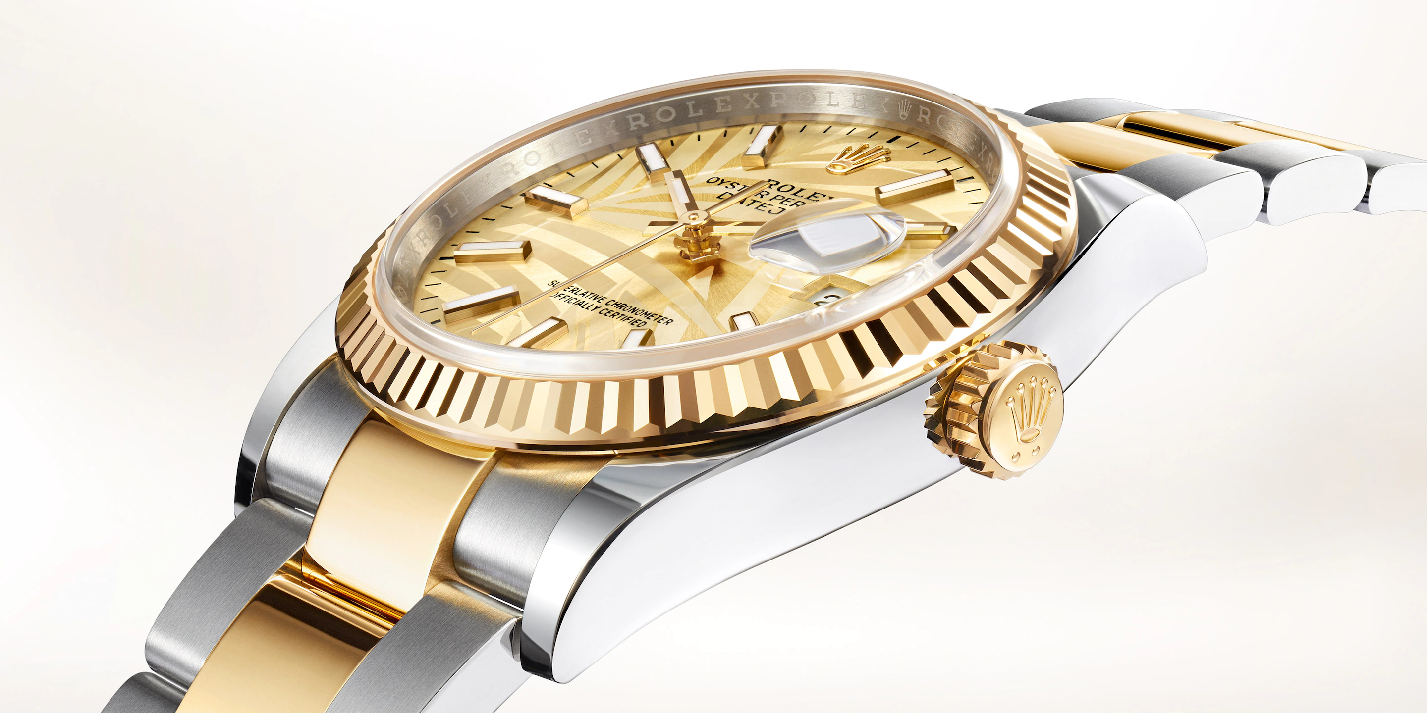 ロレックス フルーテッドベゼルは、卓越性の象徴。元来、オイスターベゼルの刻みにはベゼルをケースにねじ込み、時計の防水性能を確実にする機能的な目的があった。したがって、その刻みはバックケースにも施されており、防水性能の維持という同じ理由で、ロレックス独自のツールを用いてケースにねじ込まれていた。時を経て、ベゼルの刻みはデザインの要素となり、ロレックスのシンボルとなった。現在、フルーテッドベゼルは卓越性の象徴であり、ゴールドのみで製造されている。