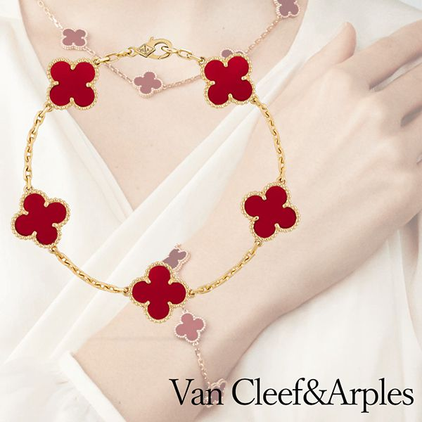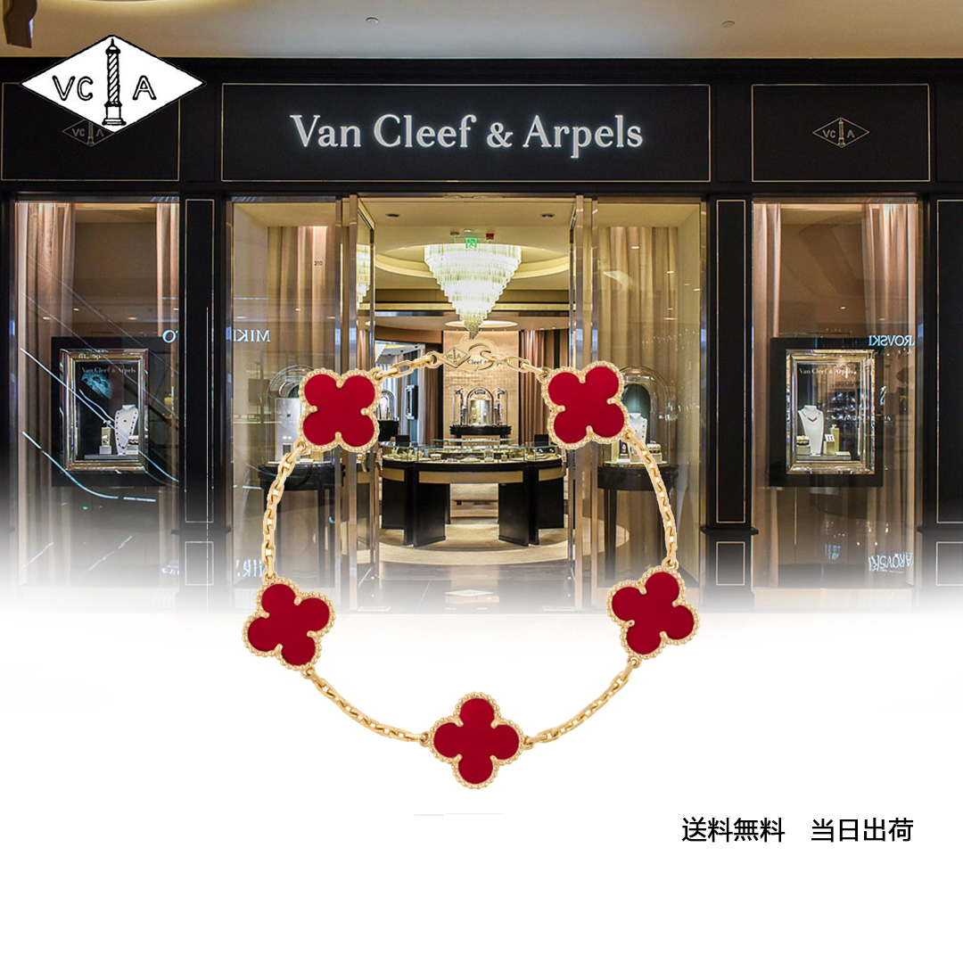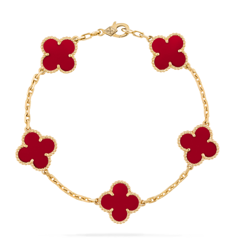 ヴィンテージ アルハンブラ ブレスレット、5モチーフ、イエローゴールド、カーネリアン